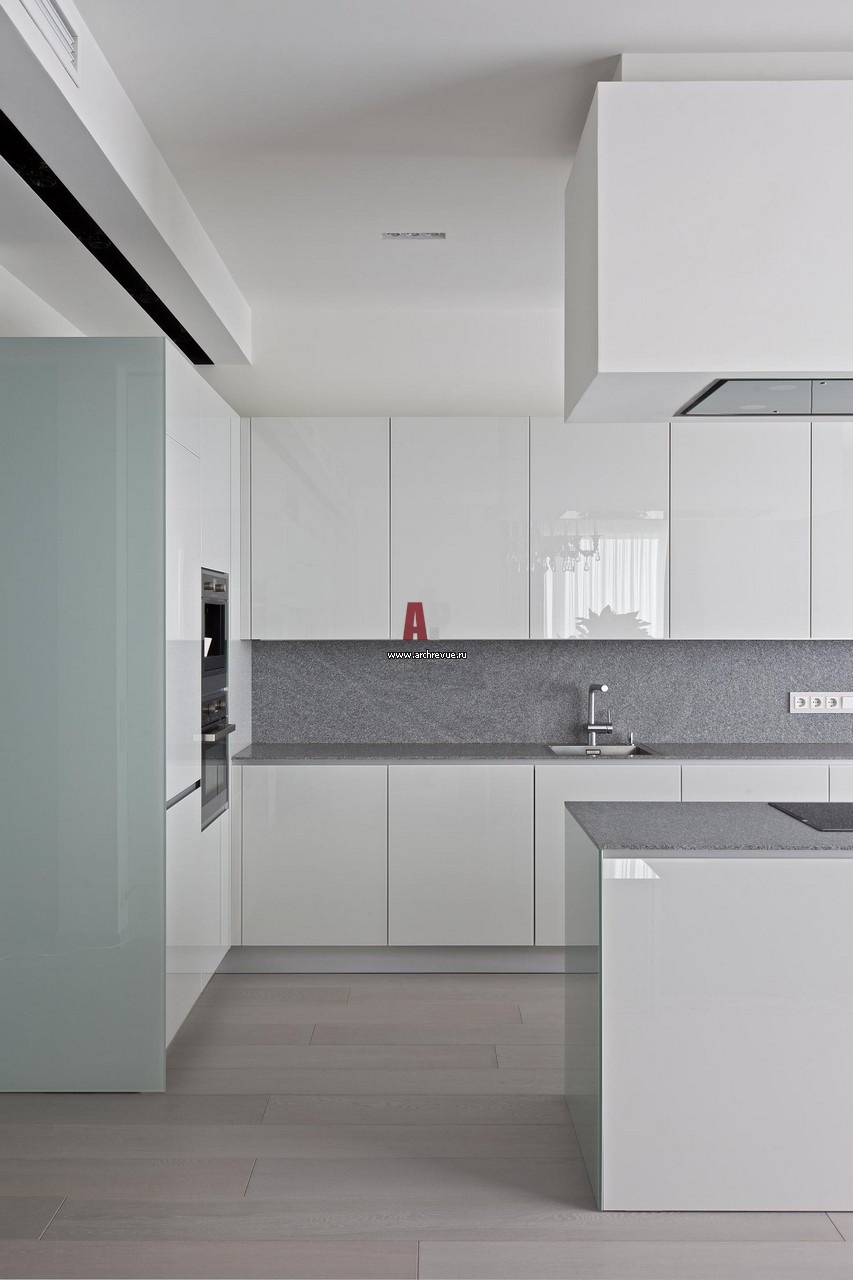 Белая кухня MKcucine с глянцевыми фасадами в стиле минимализм.