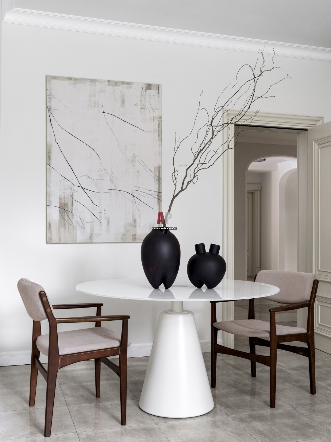 Зона для завтраков на кухне подчеркнуто современная. Стулья, Deep House. Картина Наталии Бутко.