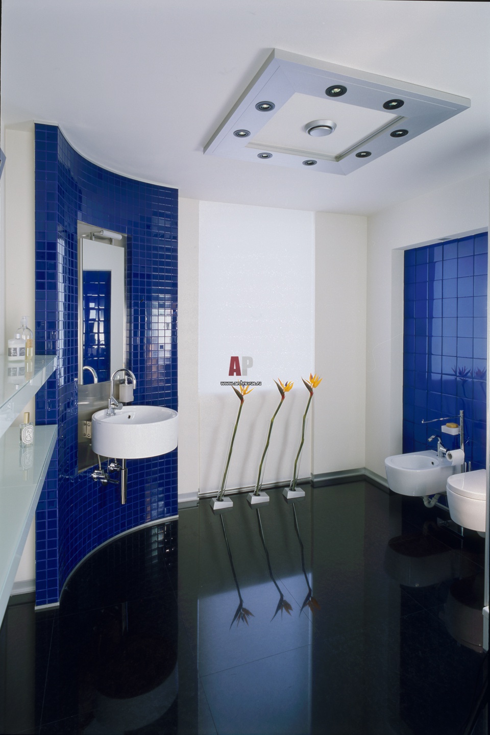 Лаконичный дизайн квартиры подчеркивает геометричная сантехника, поставщик «Нэксклюзив».