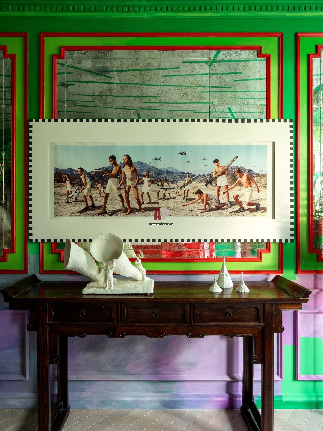 Спальня. Над винтажной консолью картина художественной группы AES+F из серии Action Half Life 2003-2005 годов.
