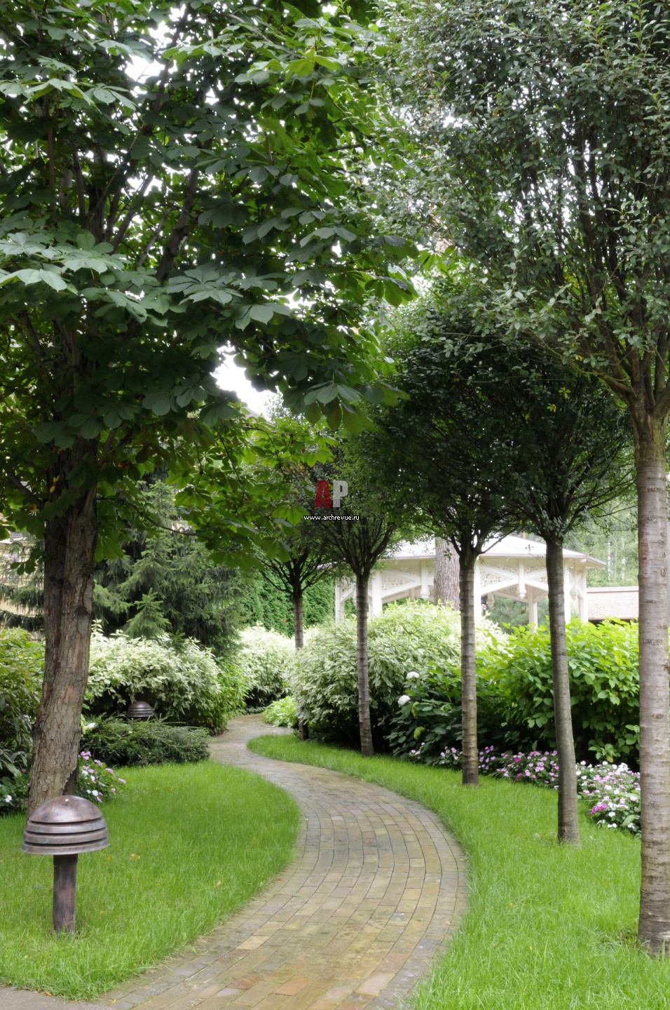 Проходя по аллее к дому, можно полюбоваться шаровидными вишнями – они не плодоносят, а выполняют лишь декоративную функцию и особенно хороши весной в наряде из воздушных бело-розовых цветков.