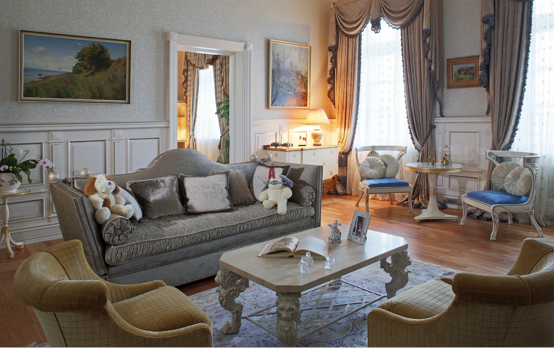 Зона гостиной на детской половине. Детский этаж выполнен в эклектичной итало-французской классике.