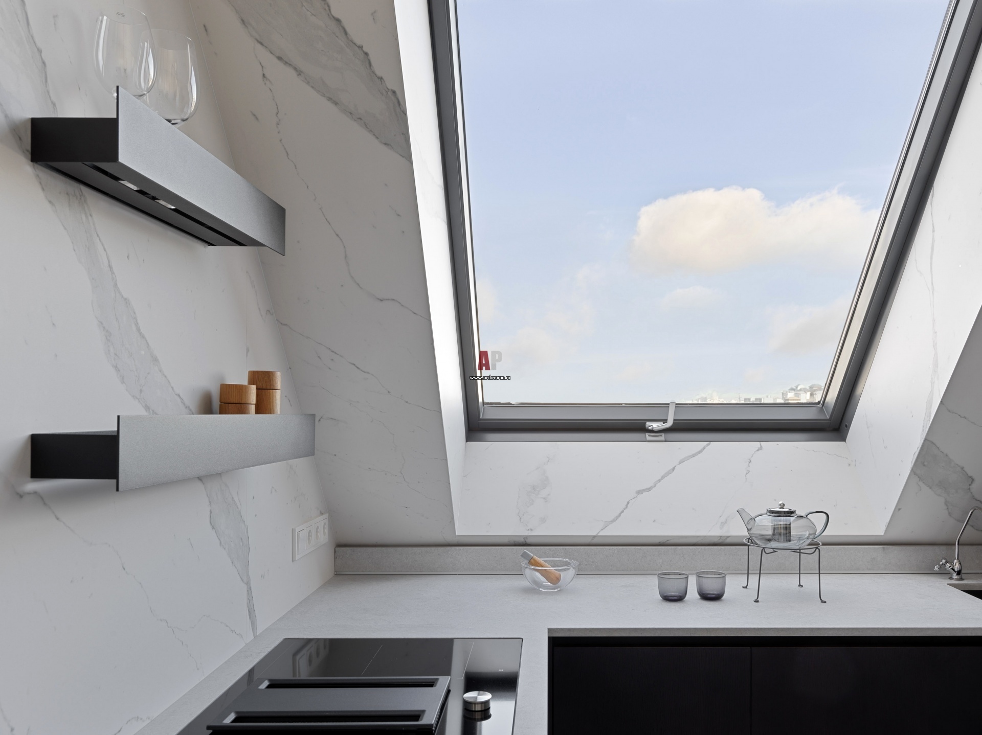 Мансардная квартира на Полянке. Интерьер кухни. Окна, VELUX.