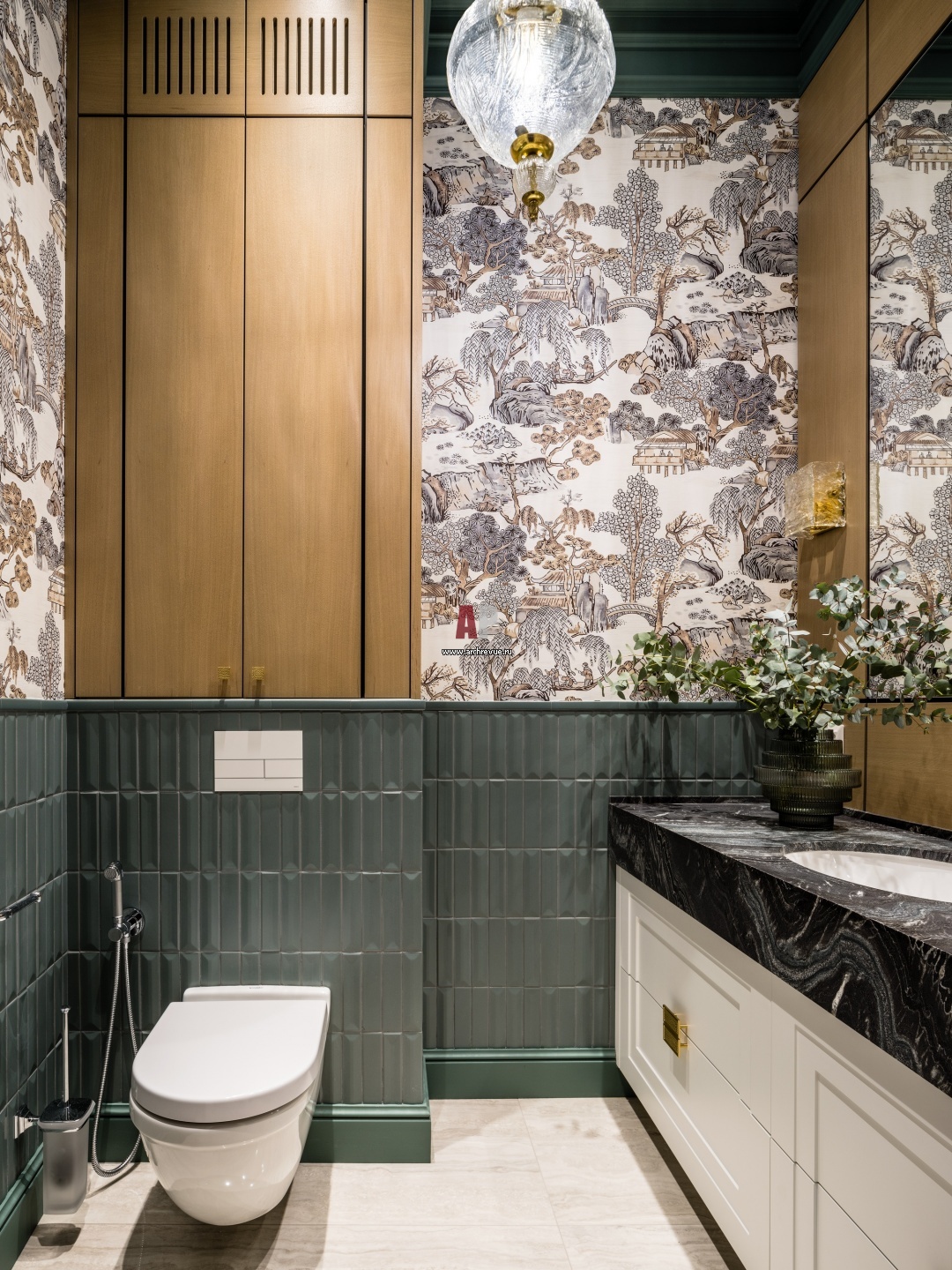 Фото интерьера гостевого санузла квартиры в стиле неоклассика