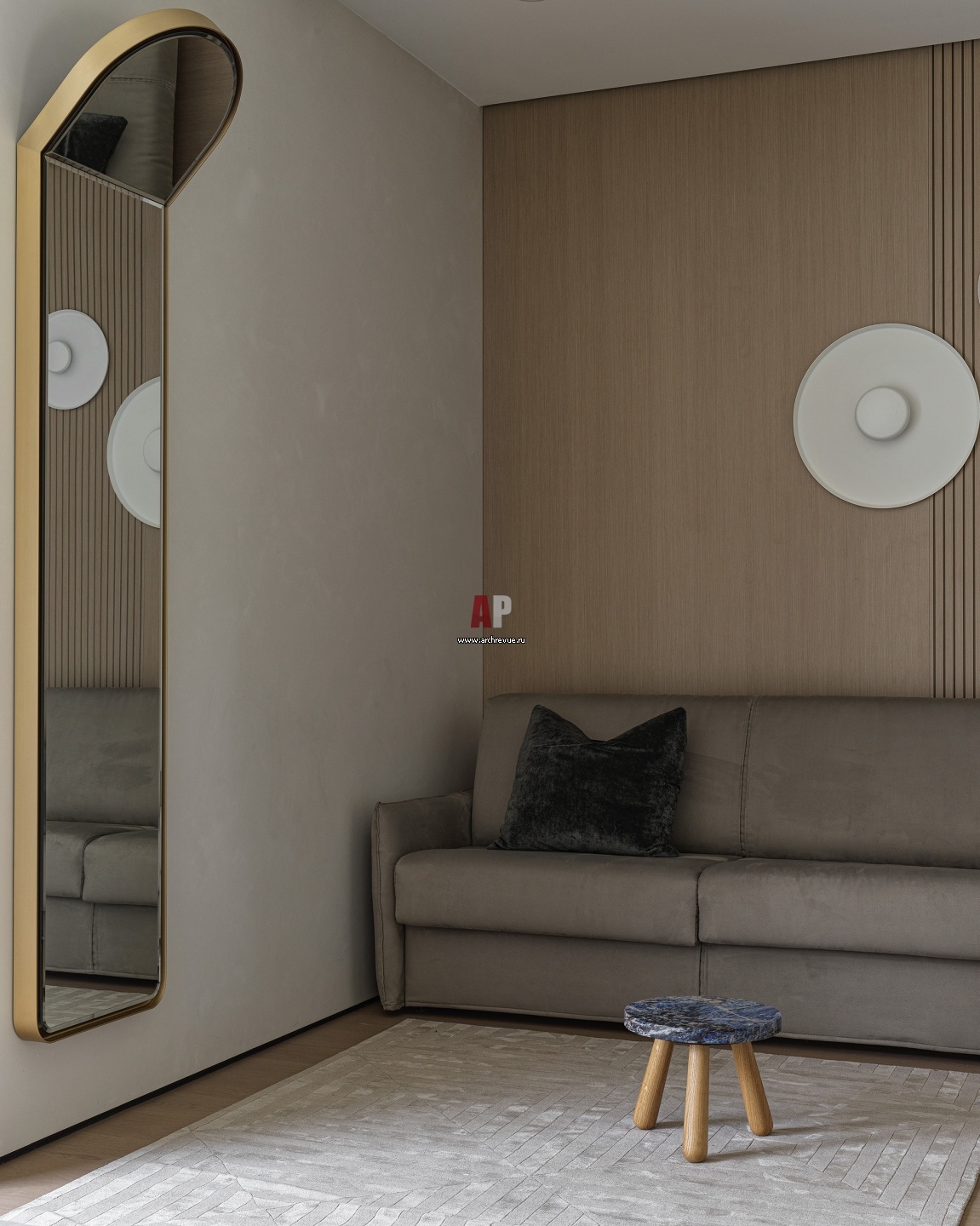Зона отдыха в детской. Диван, Felis. Бра, Vibia. Зеркало, Baxter.