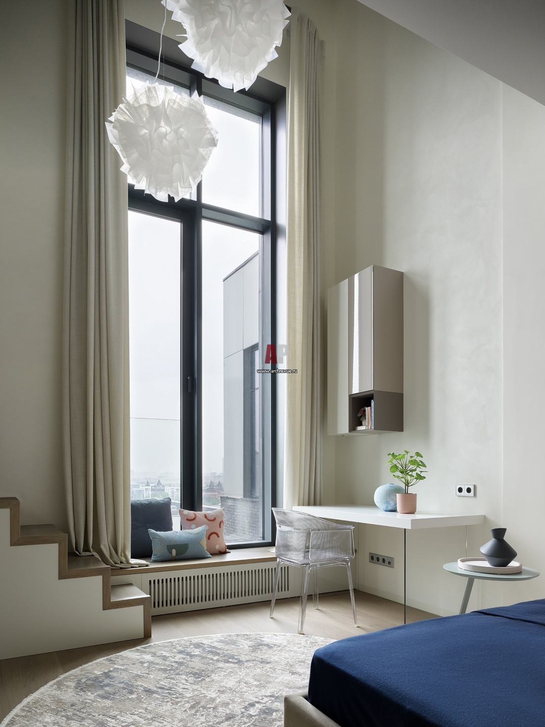 Интерьер 2-х этажного пентхауса с видом на сталинскую высотку МГУ