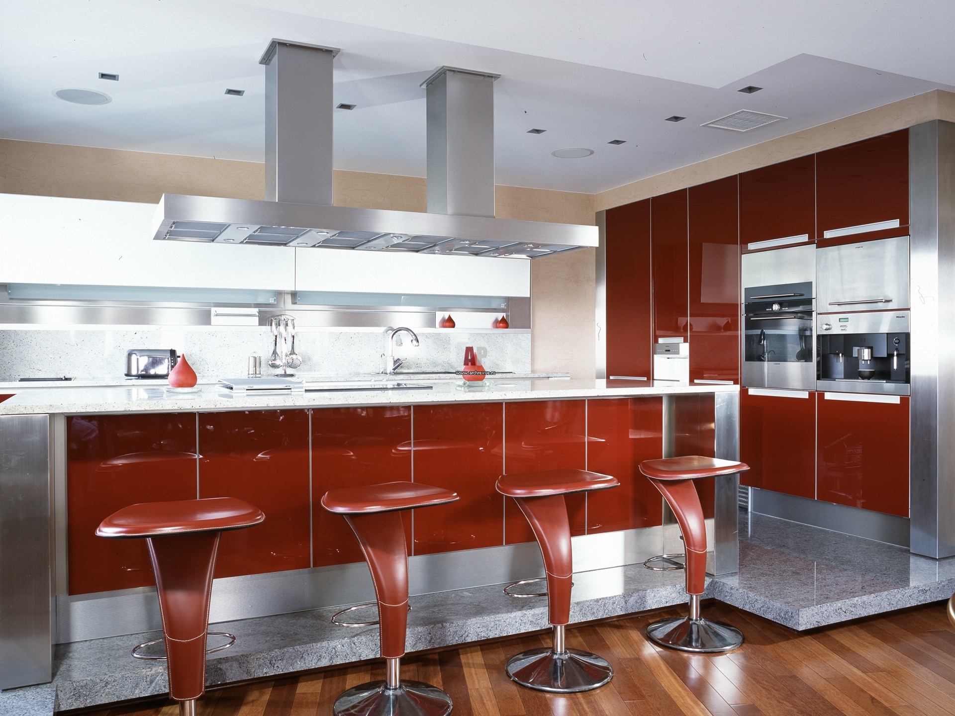 Выделяясь современным дизайном, отличным от общего решения интерьера, кухня Poggenpohl поднята на светящийся подиум. За дверью одного из шкафов спрятан вход в подсобку.