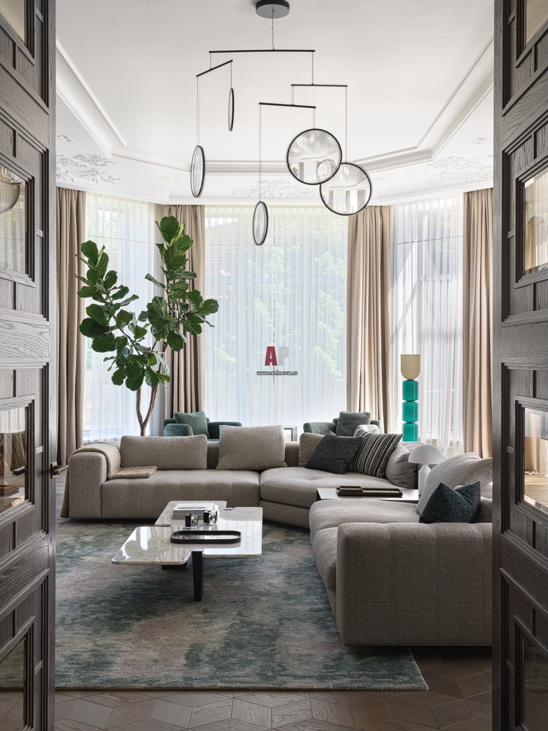 Статусный загородный дом для семьи бизнесмена. Интерьер гостиной