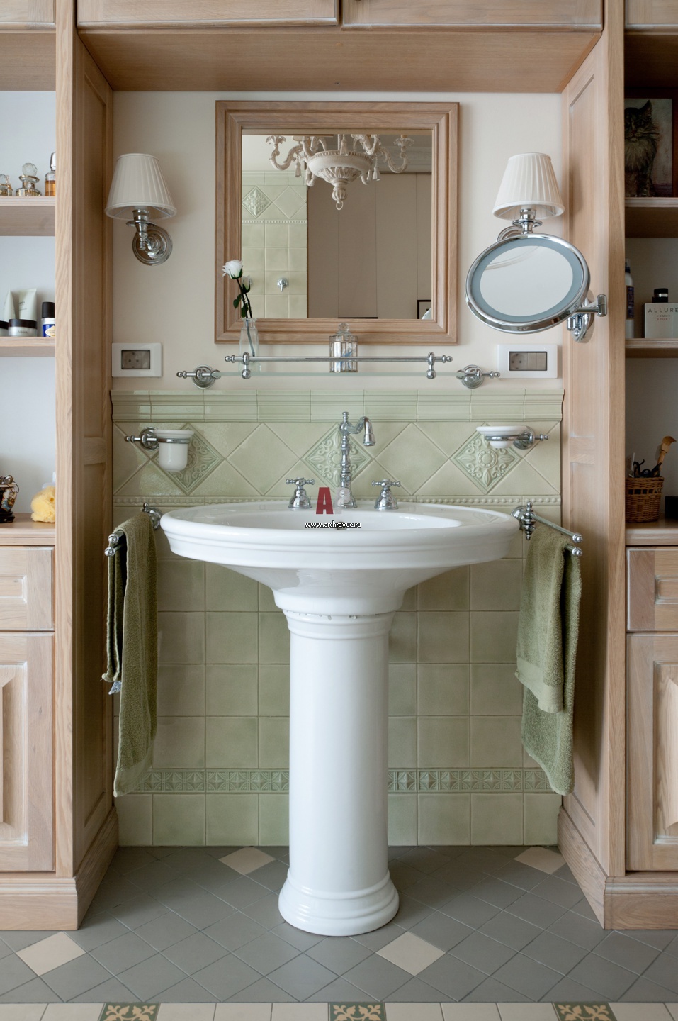 Зона умывальника в интерьере ванной комнаты. Сантехника, Villeroy & Boch.