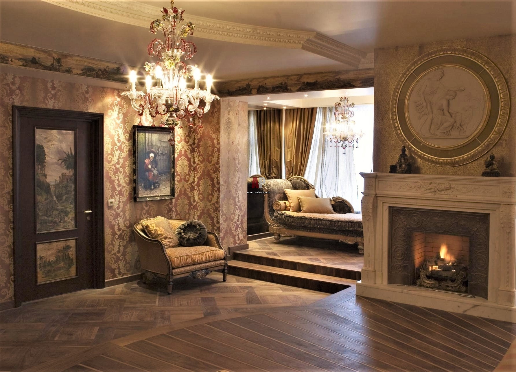 Проект:Квартира в имперском стиле Автор проекта:Фрейман Ольга Соавтор(ы): Ольга Зейналова Объект: Квартира знатока искусства с атмосферой имперской роскоши Общая площадь: 500 кв.м.