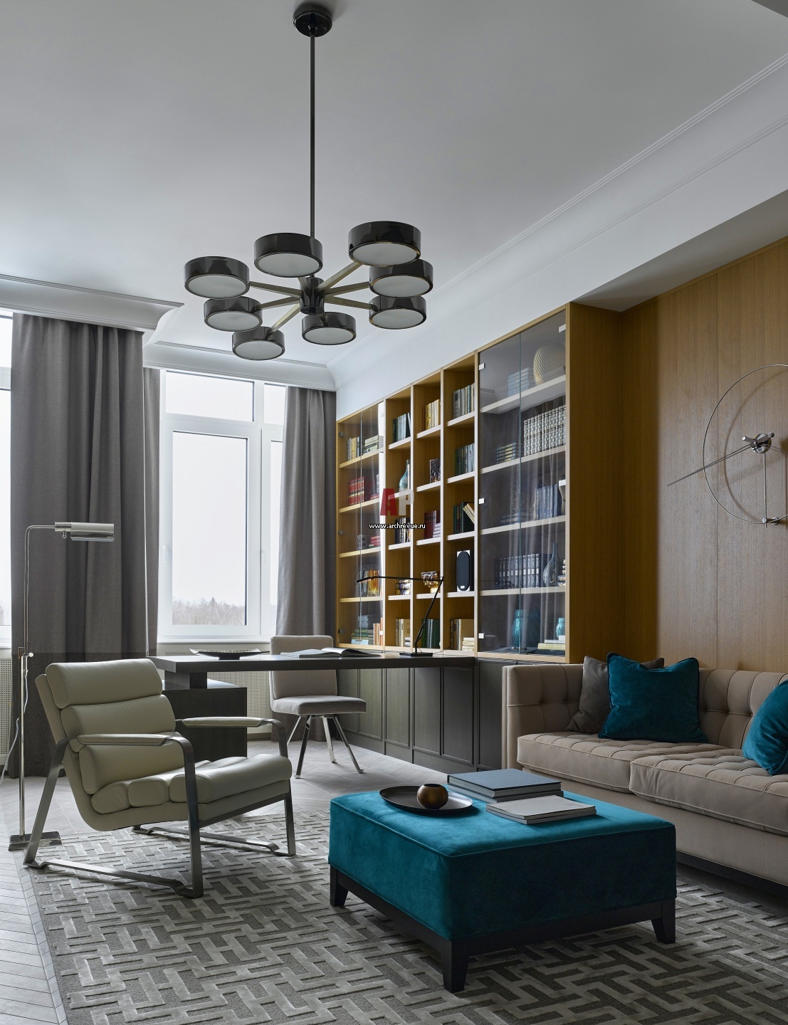Фото интерьера кабинета квартиры в американском стиле Фото интерьера библиотеки квартиры в американском стиле