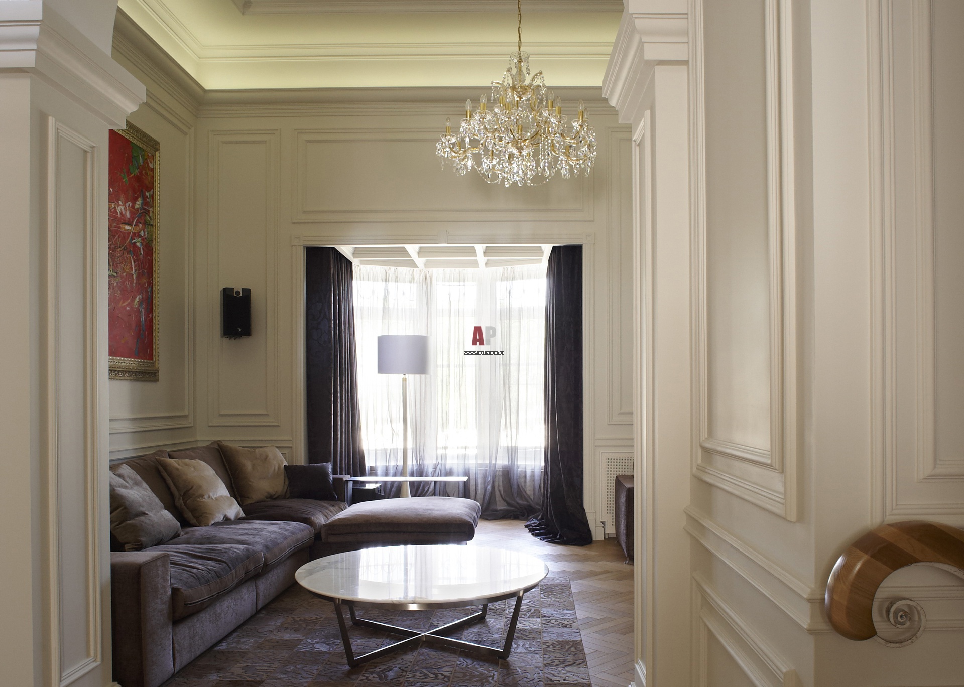 Белоснежность декорированного лепниной пространства – главный прием, объединяющий все пространства дома в единое целое.