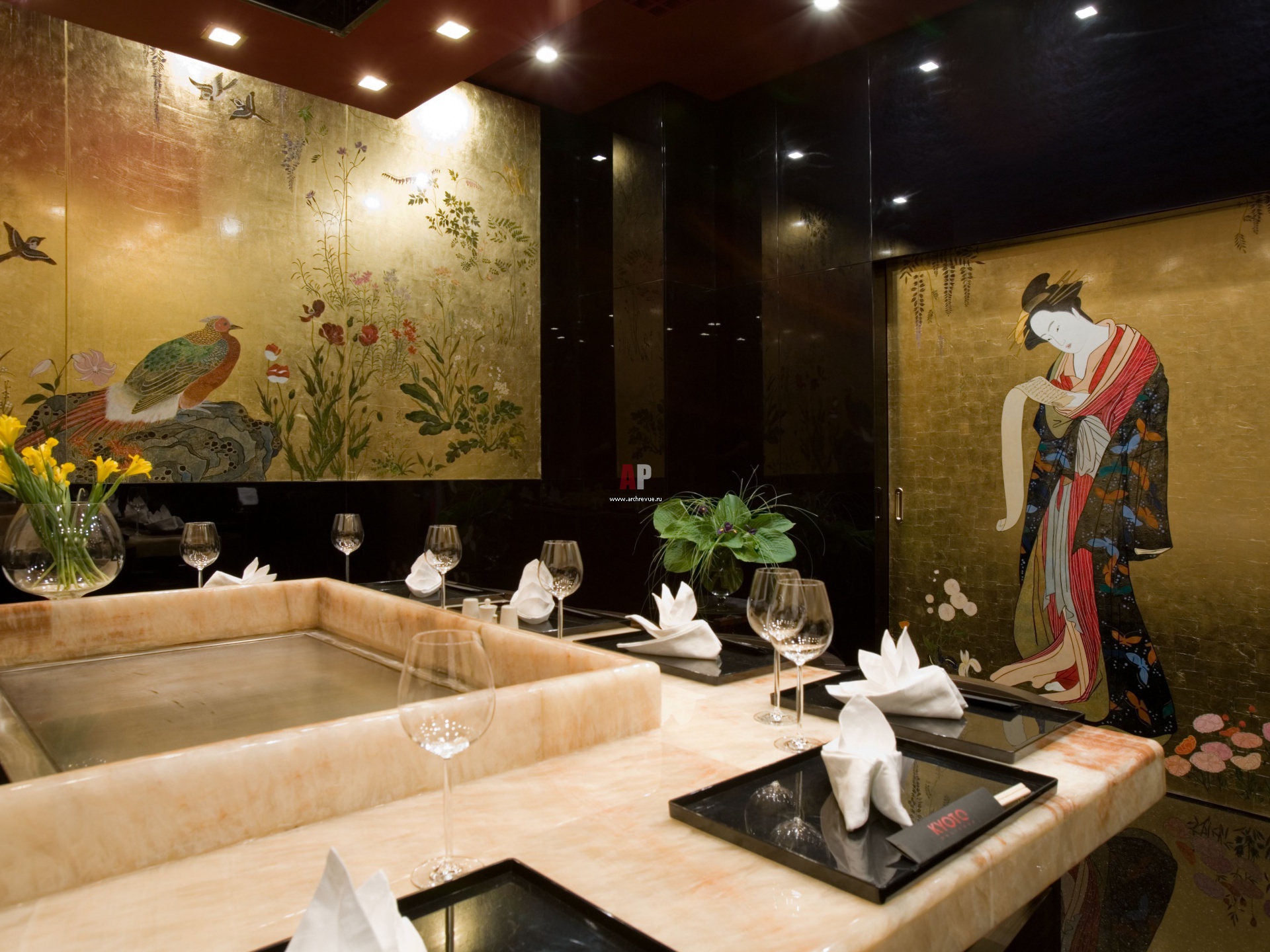 Японский ресторан, исполненный в черном глянце и золоте