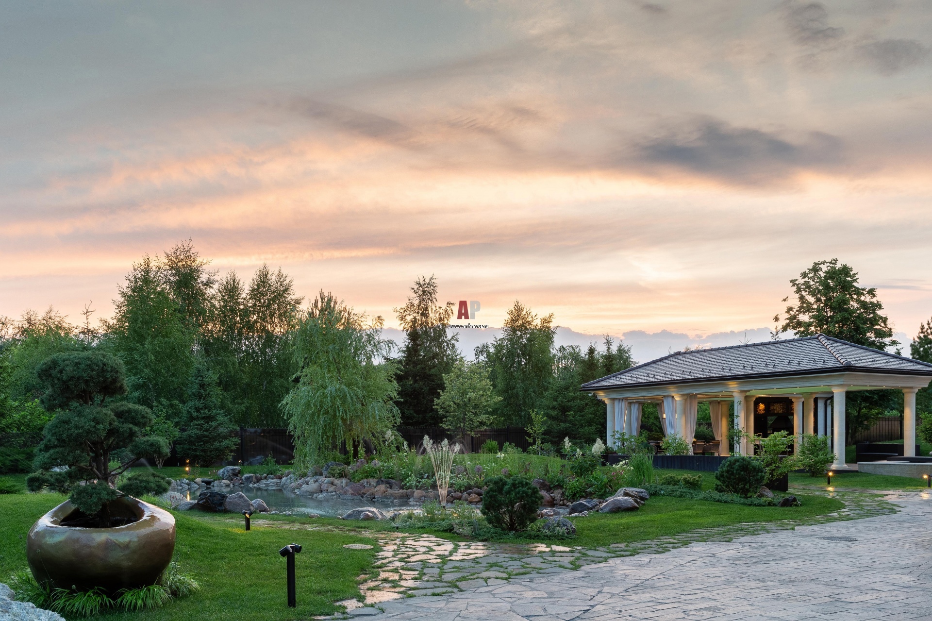 На участке есть много различного освещения, и несколько различных световых сценарии. Ландшафтный дизайн выполнен совместно с компанией High Garden.
