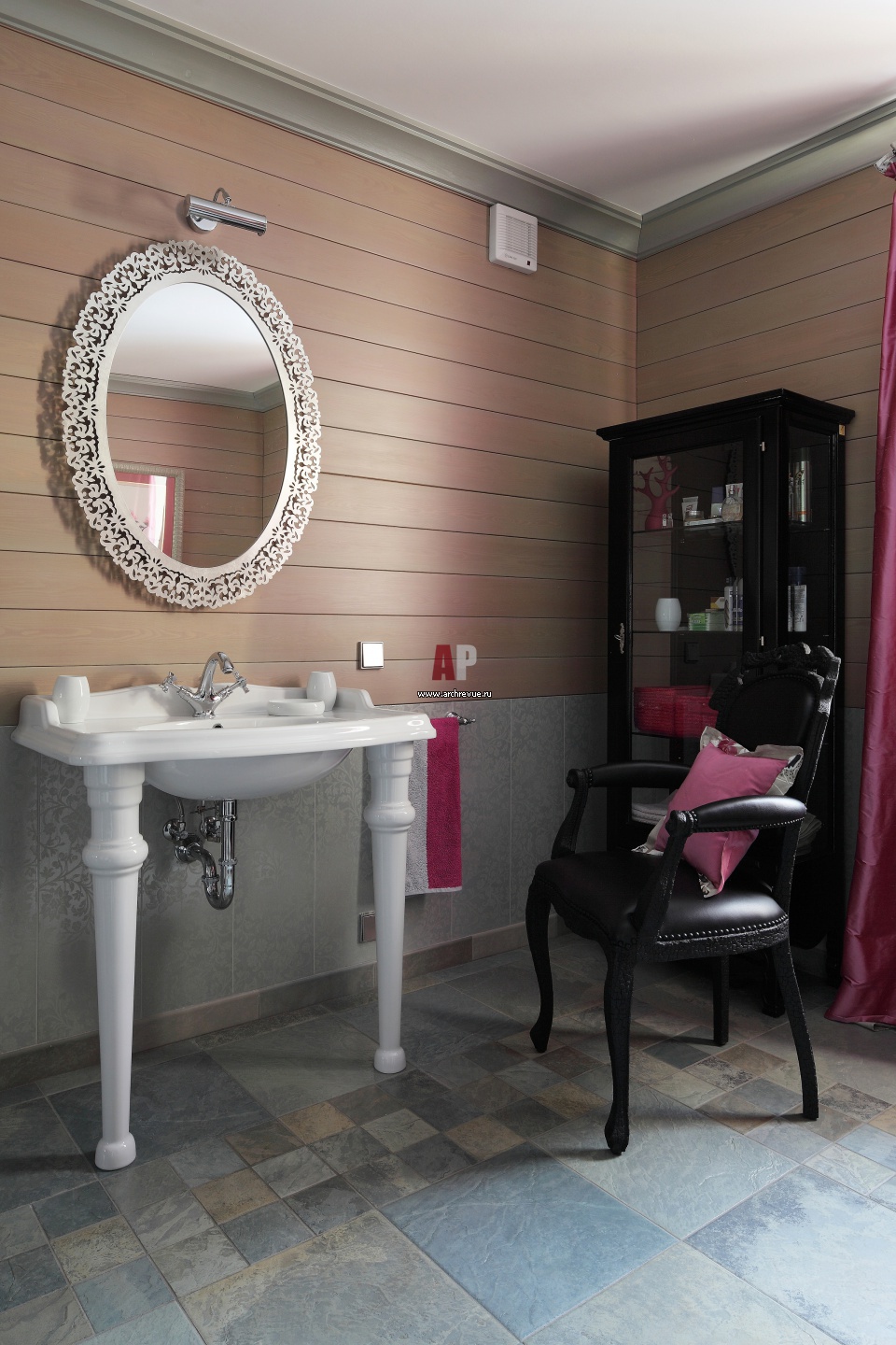 Хозяйская ванная комната. Раковина с керамическим подстольем. Кресло, MOOOI.