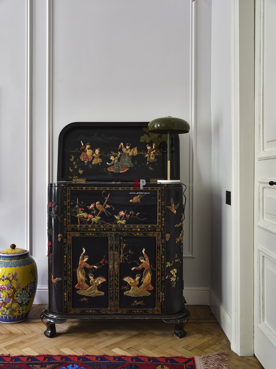 Гостиная. Английский кабинетный антикварный граммофон Academy в корпусе в стиле шинуазри.