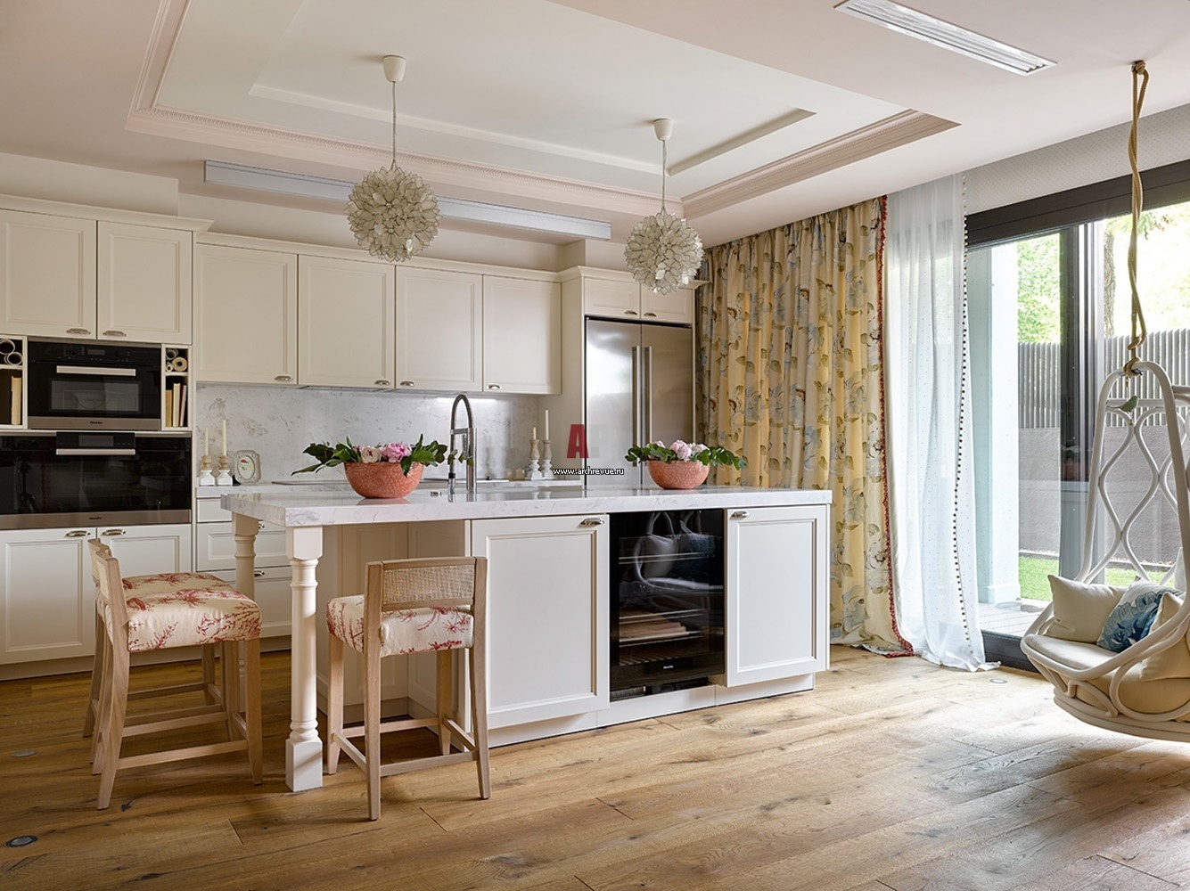 Зона кухни. Кухонный гарнитур с островом, SieMatic. Барные стулья, Meridiani.