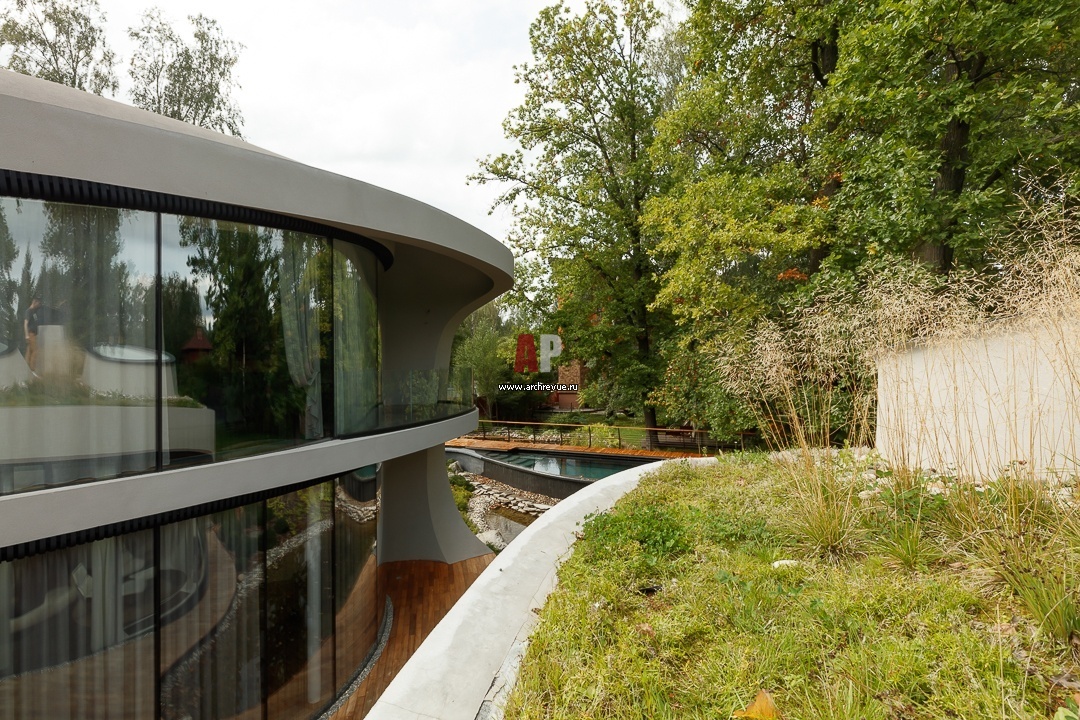 Ландшафтный проект с вертикальным озеленением. На сухих солнечных участках с минимальной толщиной грунта высажены очитки, лапчатка гусиная, овсяница.