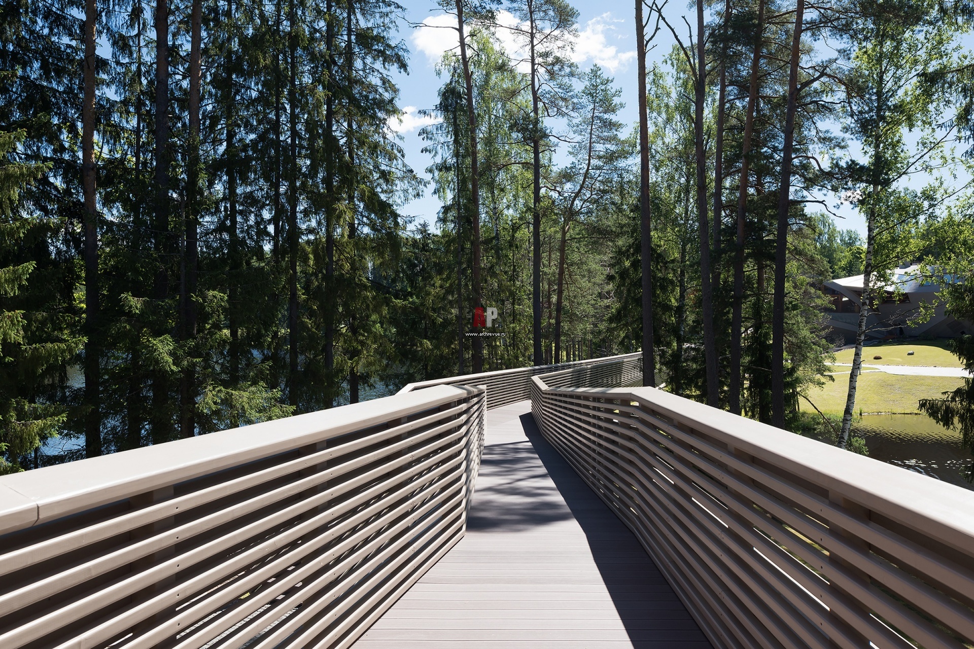 Усадьба Клаугис в Латвии. Деревянные мосты имеют сложную форму, повторяющую рисунок ландшафта.