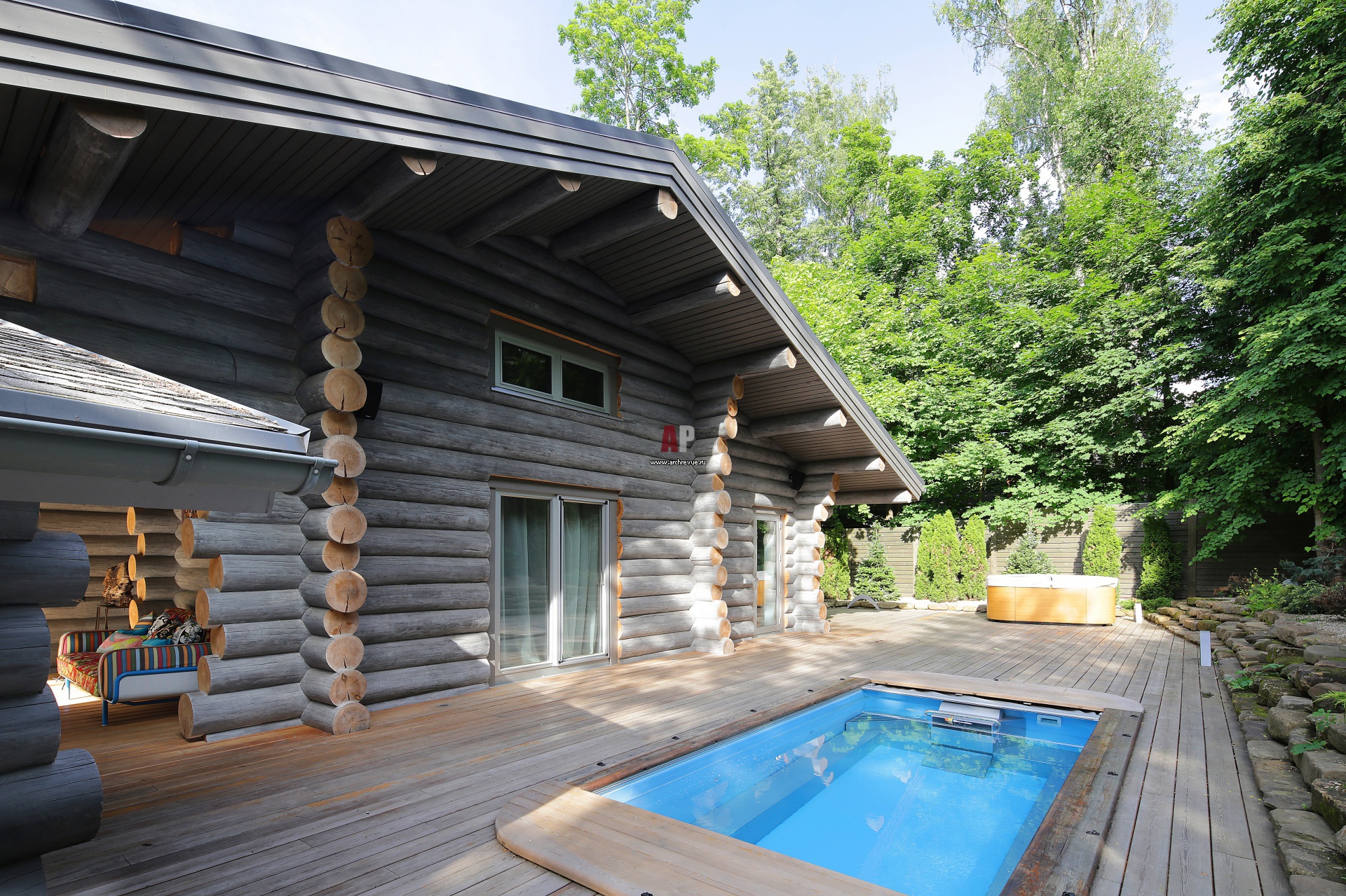 За домом, н открытой террасе находится небольшой бассейн с противотоком и гидромассажный мини-бассейн Jacuzzi.