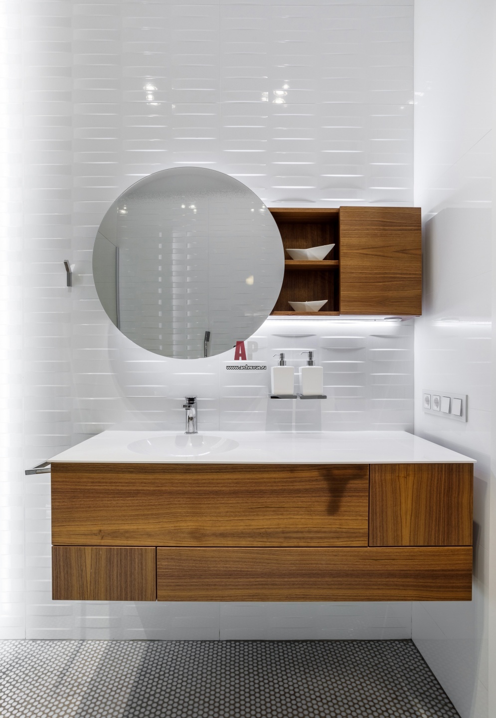 Гостевой санузел. Шкаф с зеркалом, тумба с раковиной, Burgbad. Керамогранит, Rex, Atlas Concorde.