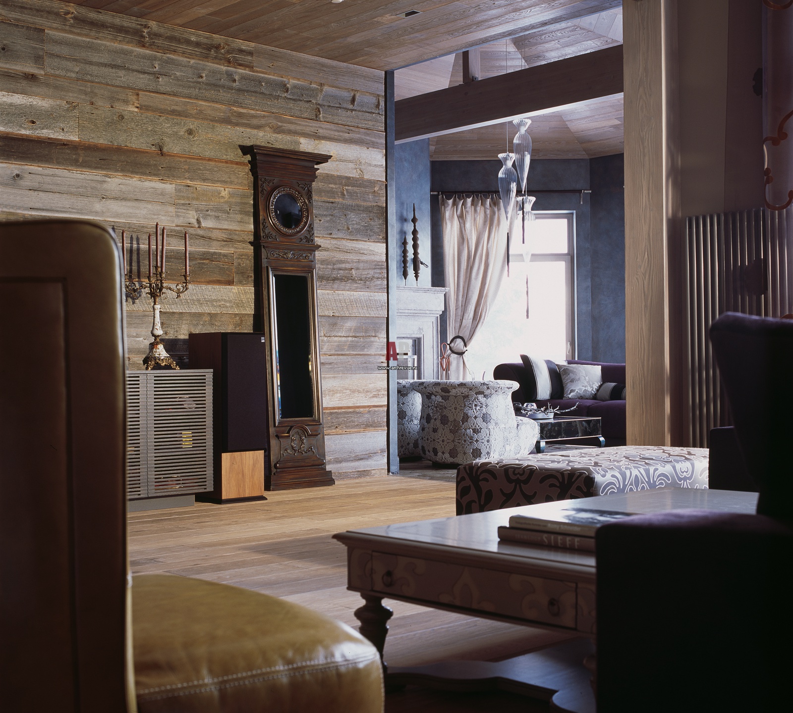 Стена облицована старыми амбарными досками, Ebony and Co. Им более 100 лет.