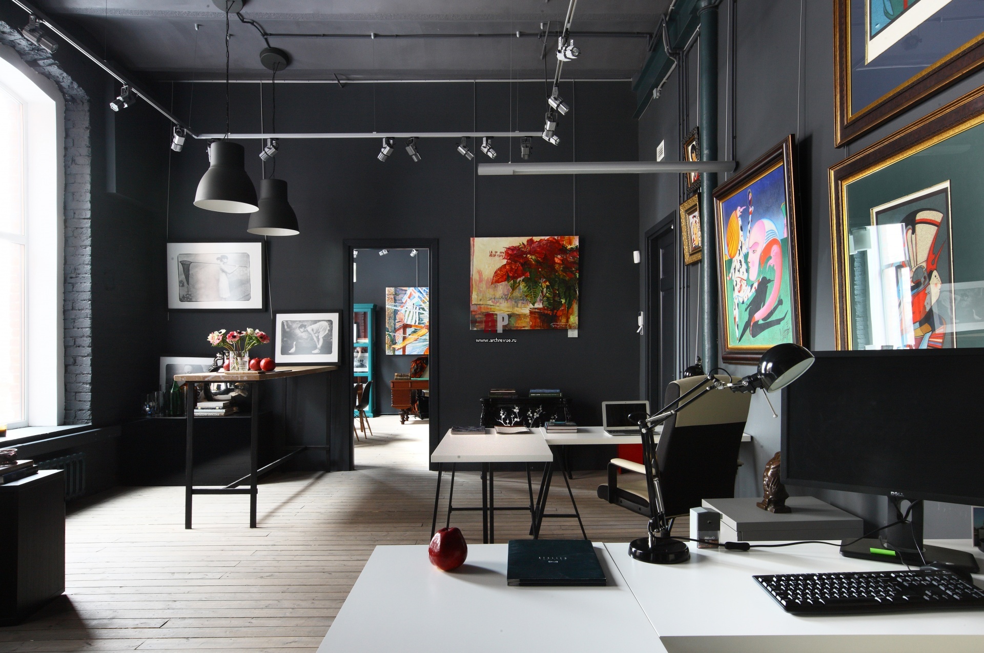 Офис занимает два помещения. Актуальный вид интерьеру придают работы лучших современных художников, фотографов, скульпторов, которые со временем будут меняться. На фото – работы Михаила Шемякина, Сергея Базилева, Александра Буганина, авторская литография Сальвадора Дали, скульптуры Михаила Цветкова и Сергея Бондаренко, а также фотографии Дмитрия Провоторова.