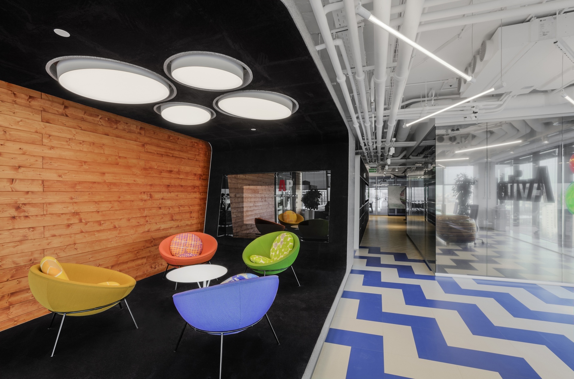 Интерьер приемной зоны офиса Avito в БЦ «Белые Сады».