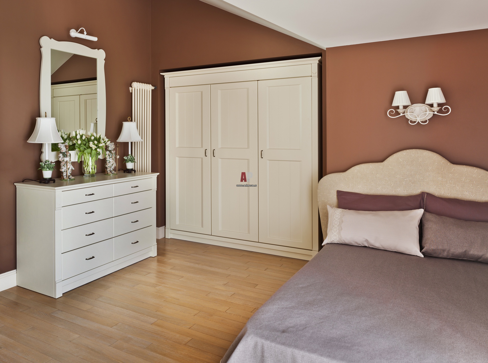 Американский стиль в оформлении интерьера гостевой спальни. С насыщенными красно-коричневыми стенами цвета контрастирует белая неоклассическая мебель.