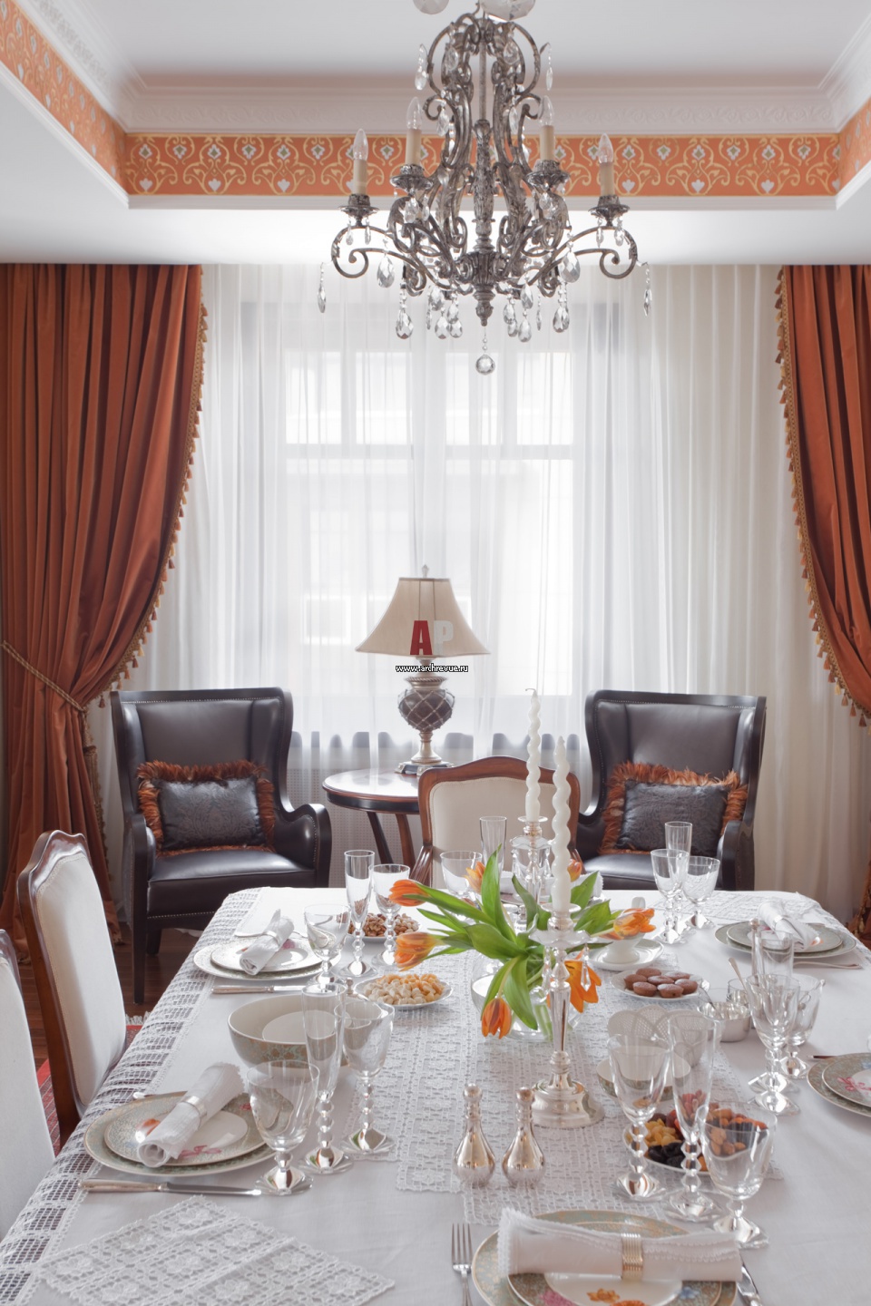 Фото интерьера столовой многоуровневой квартиры, пентхауса в восточном стиле