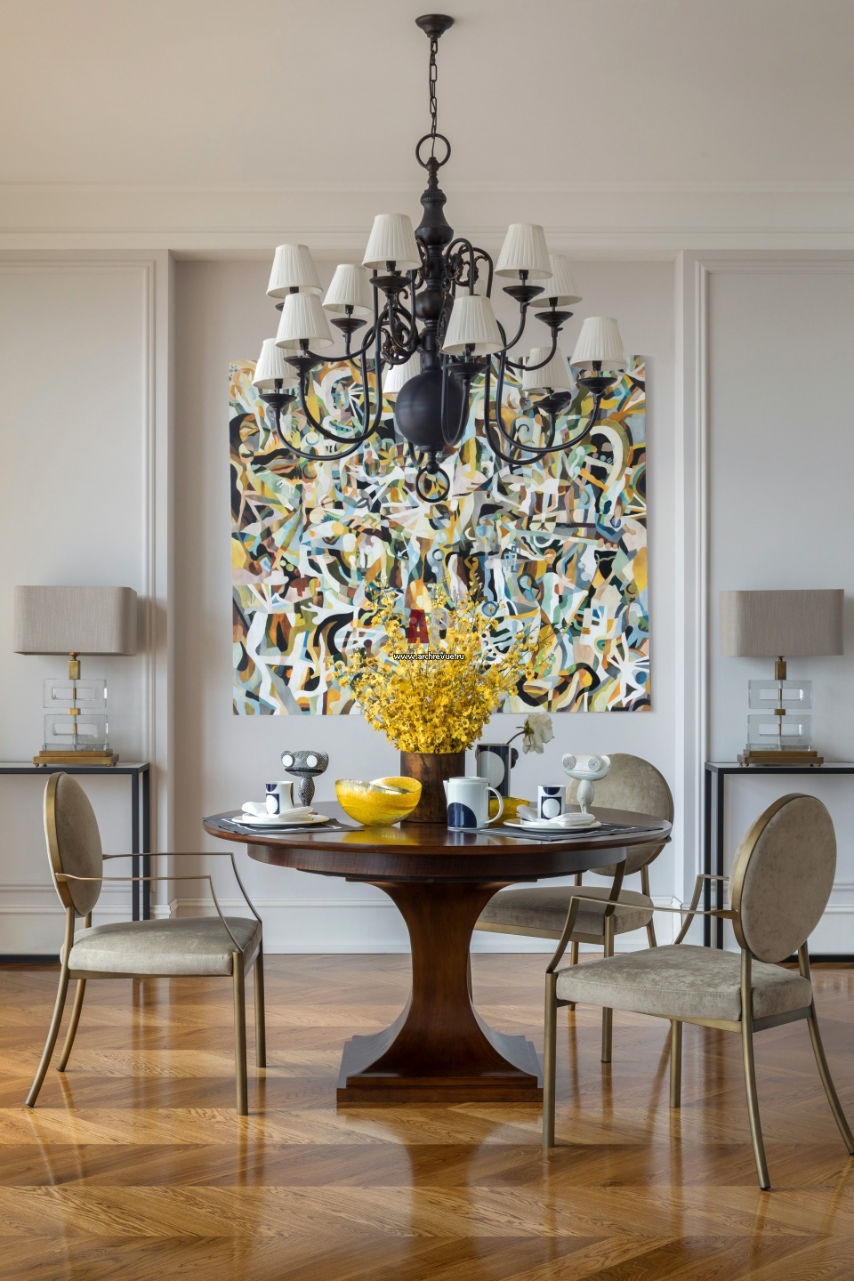 Спокойная квартира с яркими деталями. Интерьер столовой. Картина «Андалусия», художник Ренат Семенов.