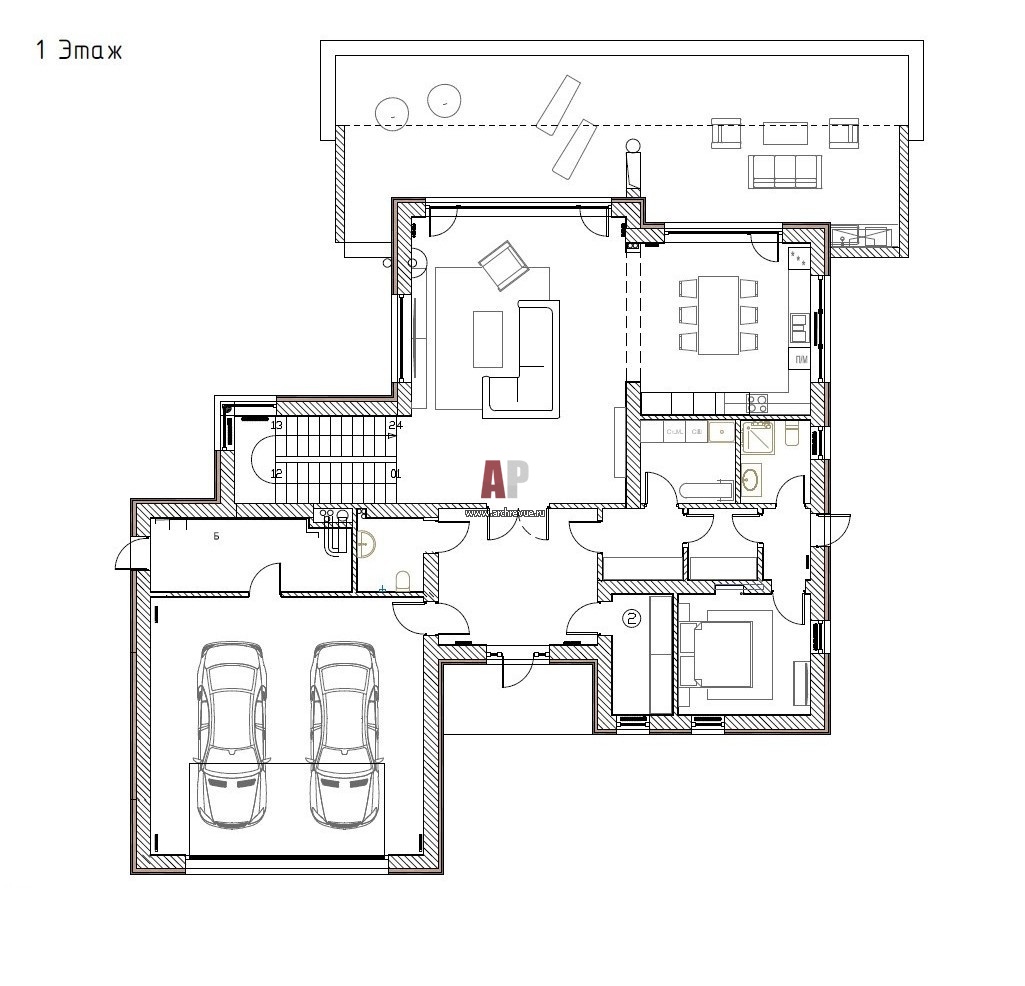 Планировка 1 этажа 2-х этажного дома в Подмосковье.
