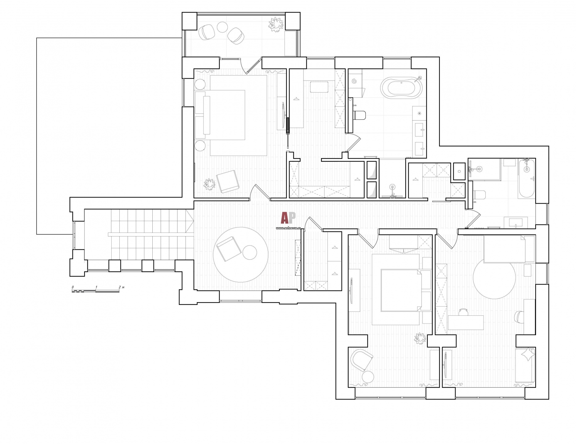 Планировка 2 этажа 2-х этажного частного загородного дома.