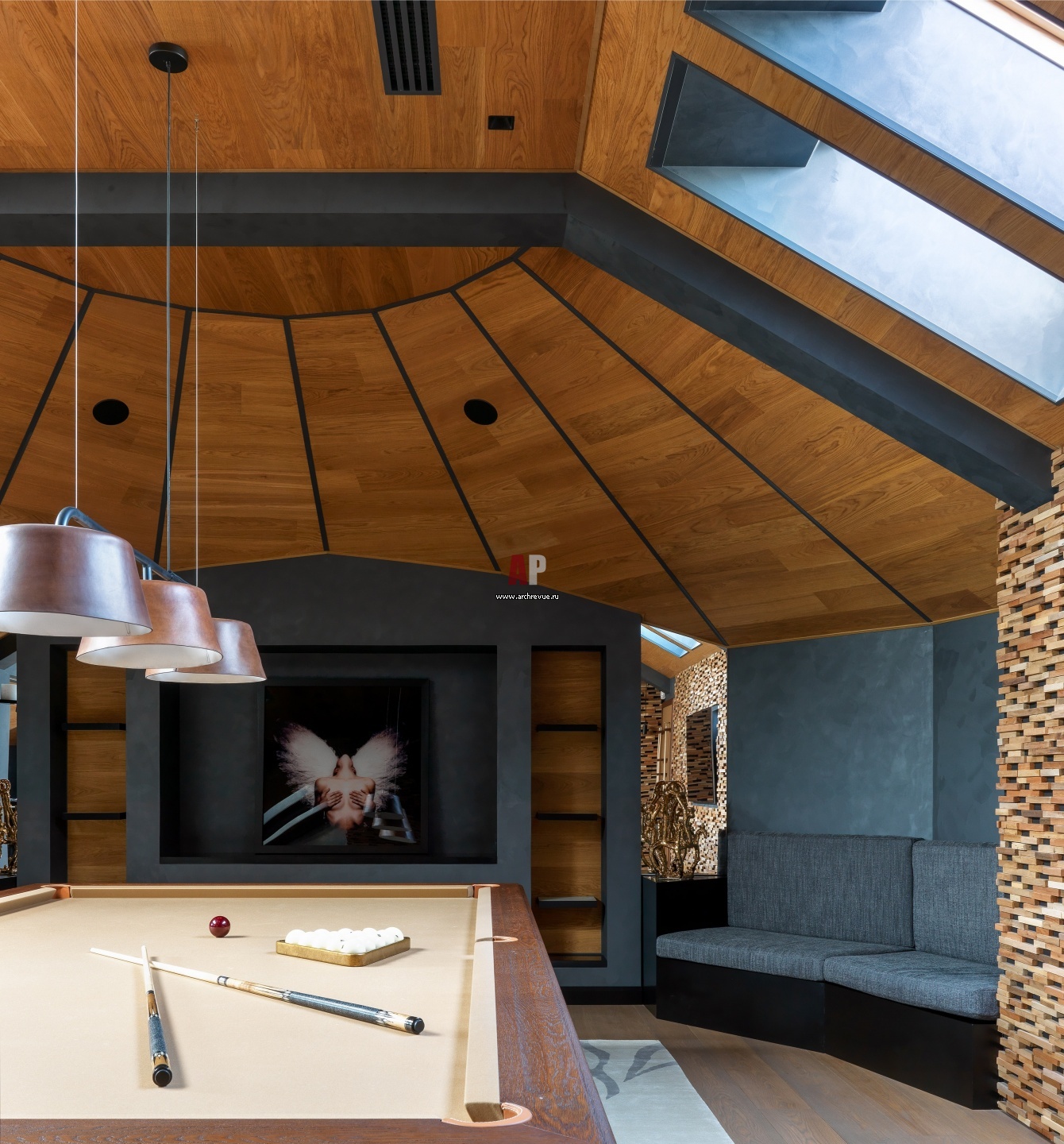 Третий этаж задуман как лаундж, здесь находится зона отдыха с кинотеатром, домашний SPA-комплекс, бильярдная и оружейная комнаты.