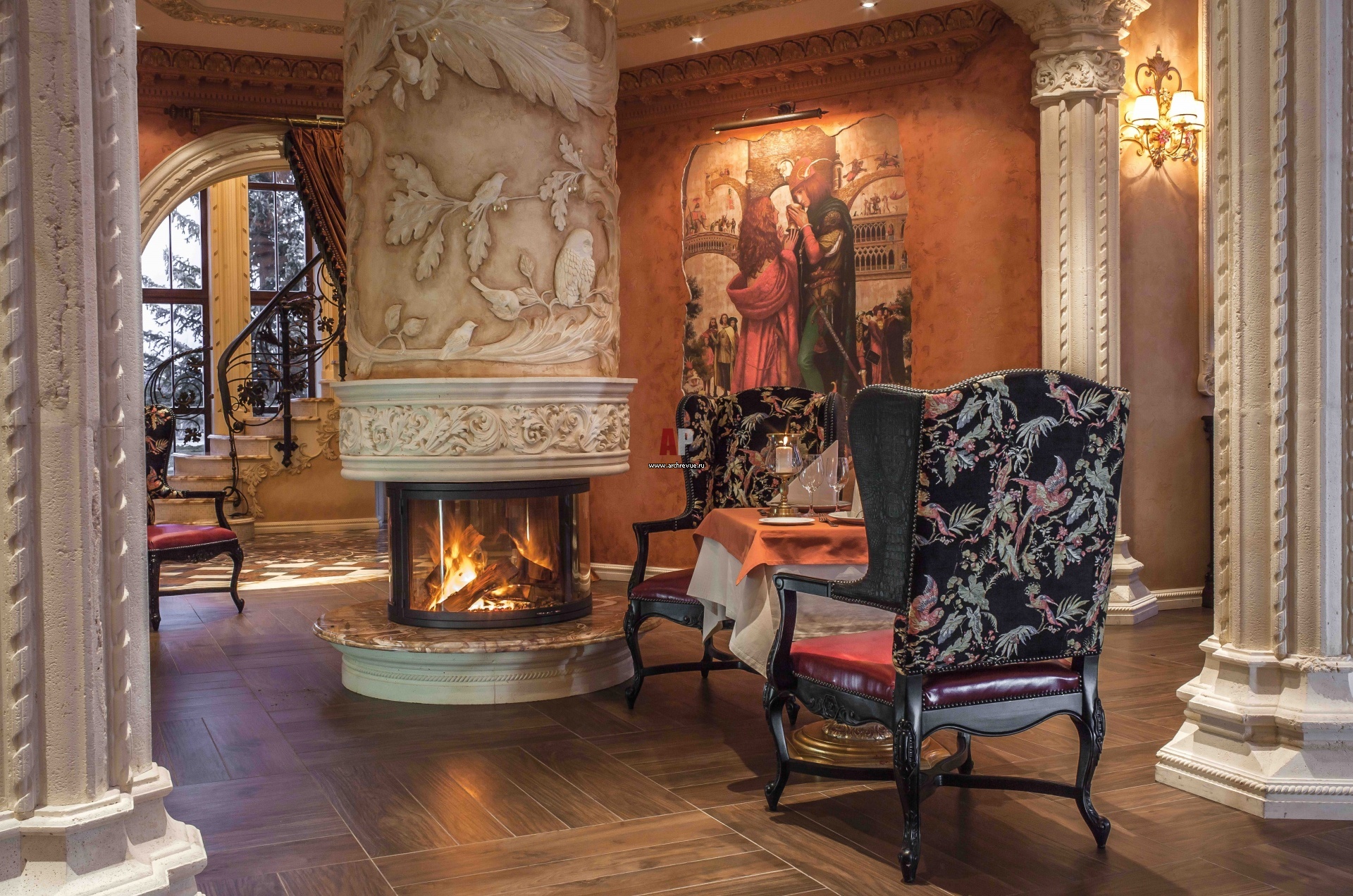 Интерьер ресторана «Вилладжио». Камерная зона у камина.