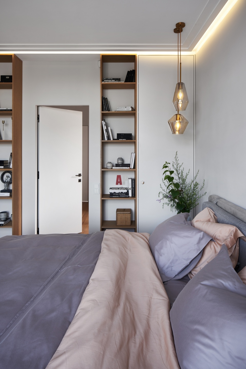 Современный двухэтажный дом в Калининграде для семьи с двумя детьми. Интерьер спальни.