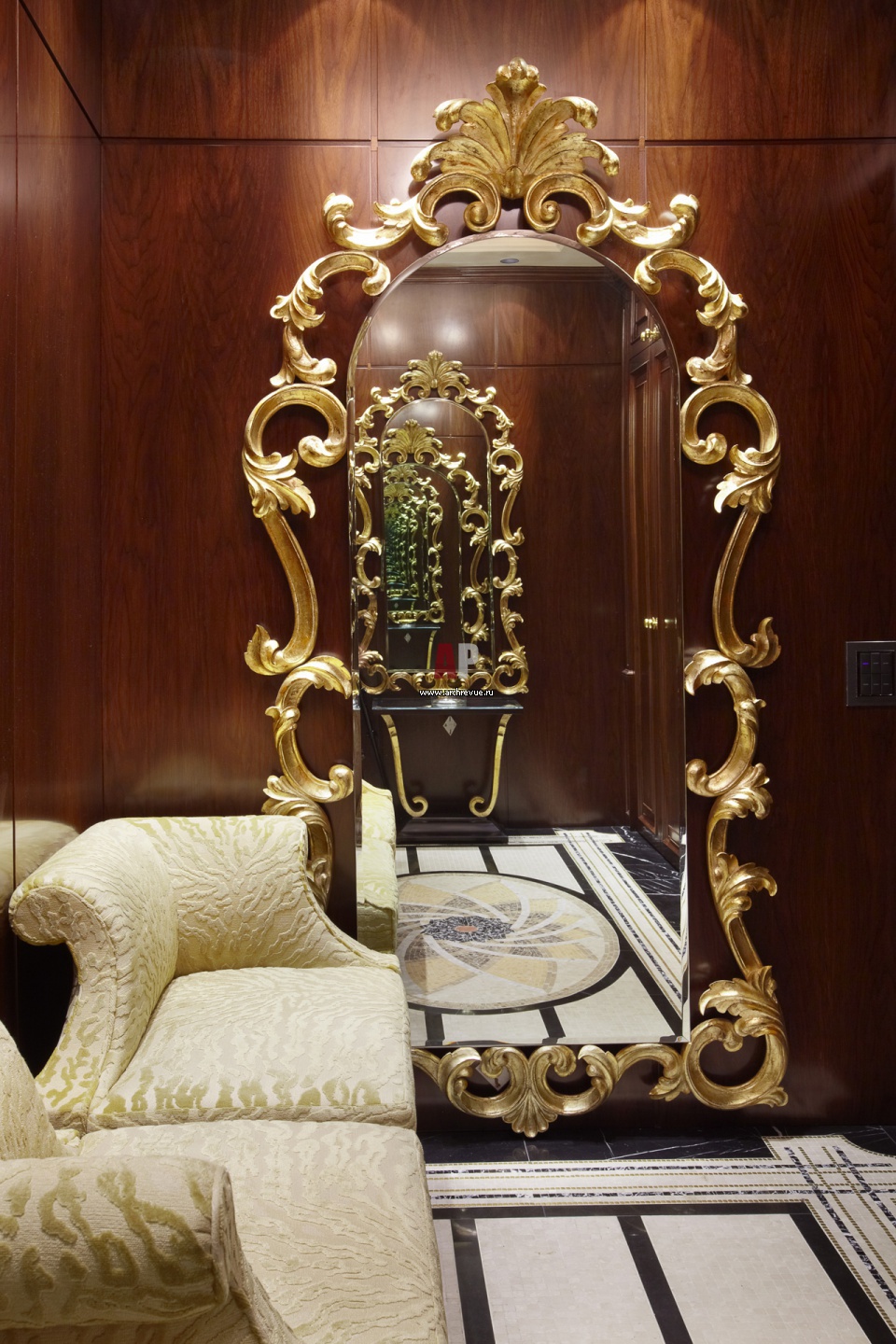 Зеркало в золотой барочной раме в прихожей.