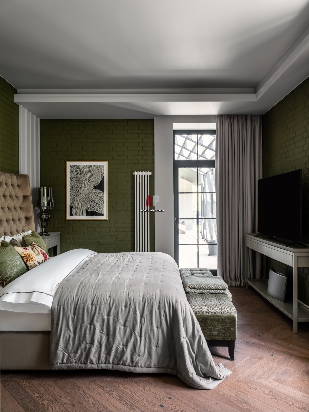 Из мастер-спальни организован свой выход на террасу, обыгранный декоративной перголой.