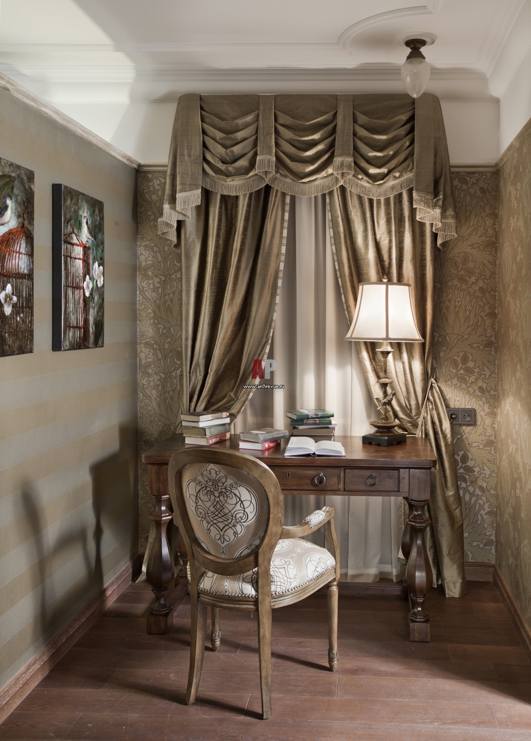 На фото – интерьер женского кабинета в неоклассике.