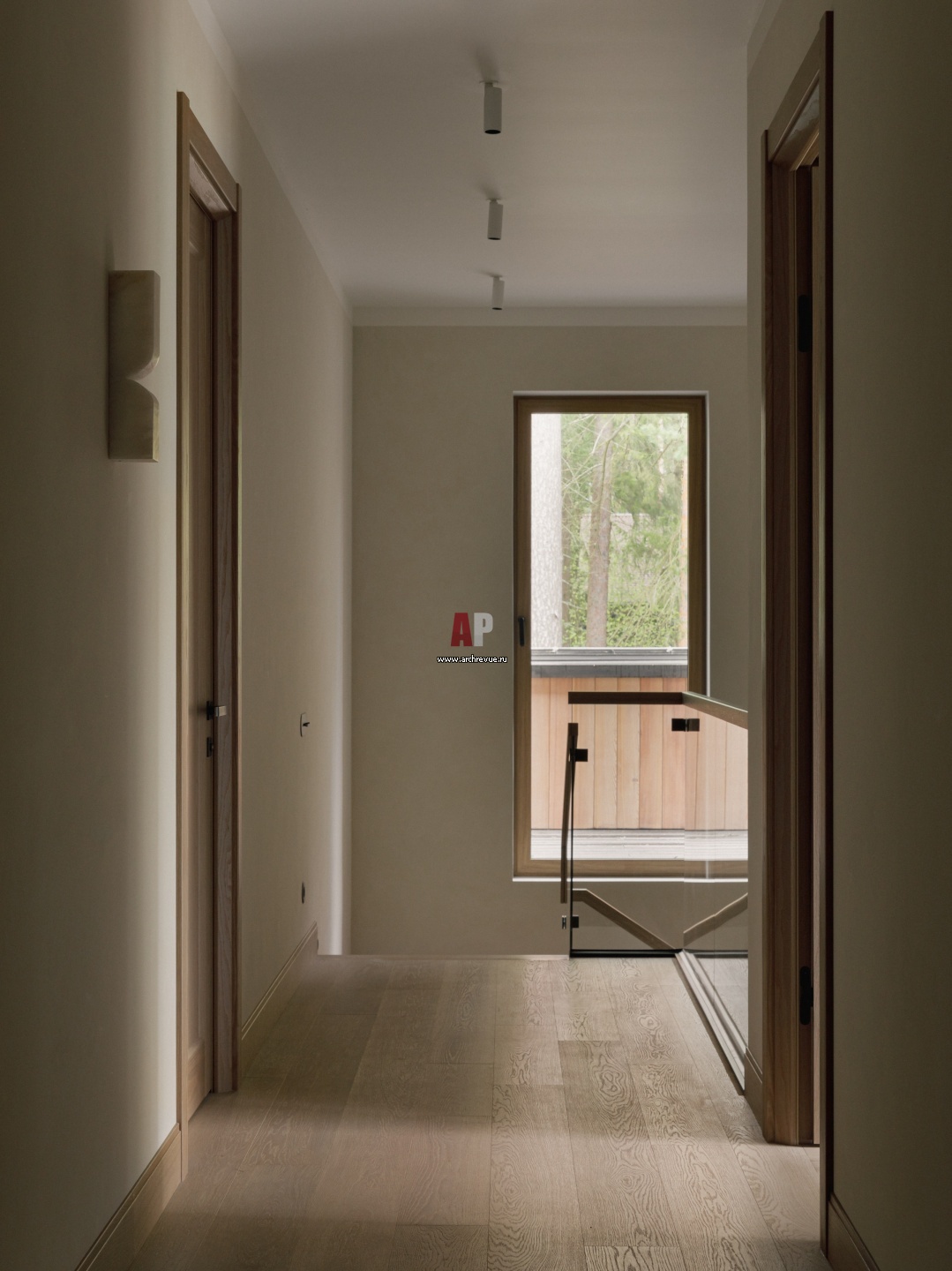 Каркасный деревянный дом в сосновом лесу. Холл второго этажа.