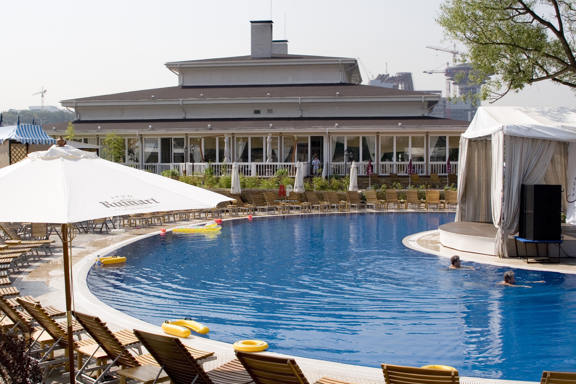 Бассейн вместе с открытыми террасами, верандами на воде и пляжным баром входят в состав ресторанного комплекса.