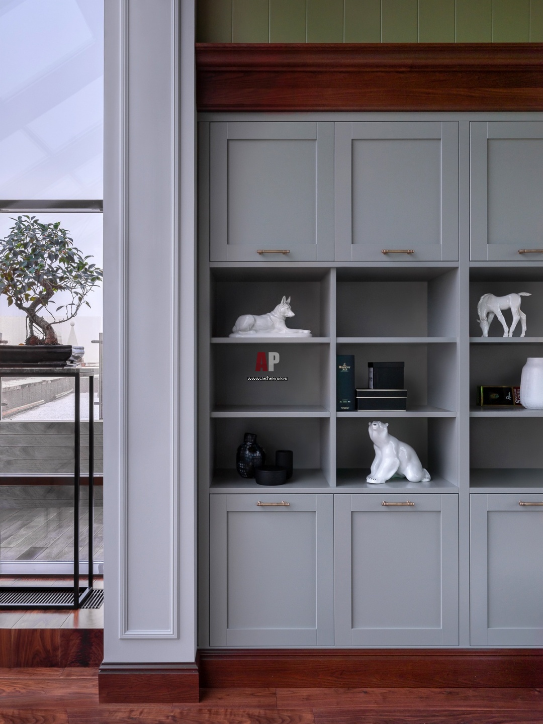 Зона отдыха на крыше с выходом на открытую террасу. Два уровня квартиры (жилой и развлекательный) разделены двумя техническими этажами, а соединяет их внутренний лифт.