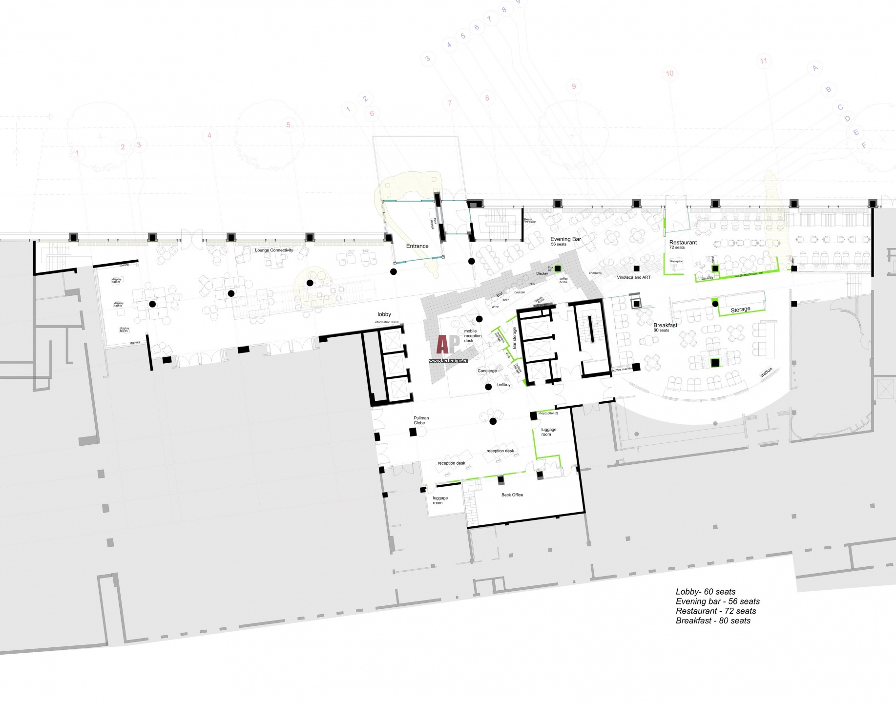 План первого этажа вестибюля и общественных зон отеля Pullman Schweizerhof в Берлине.