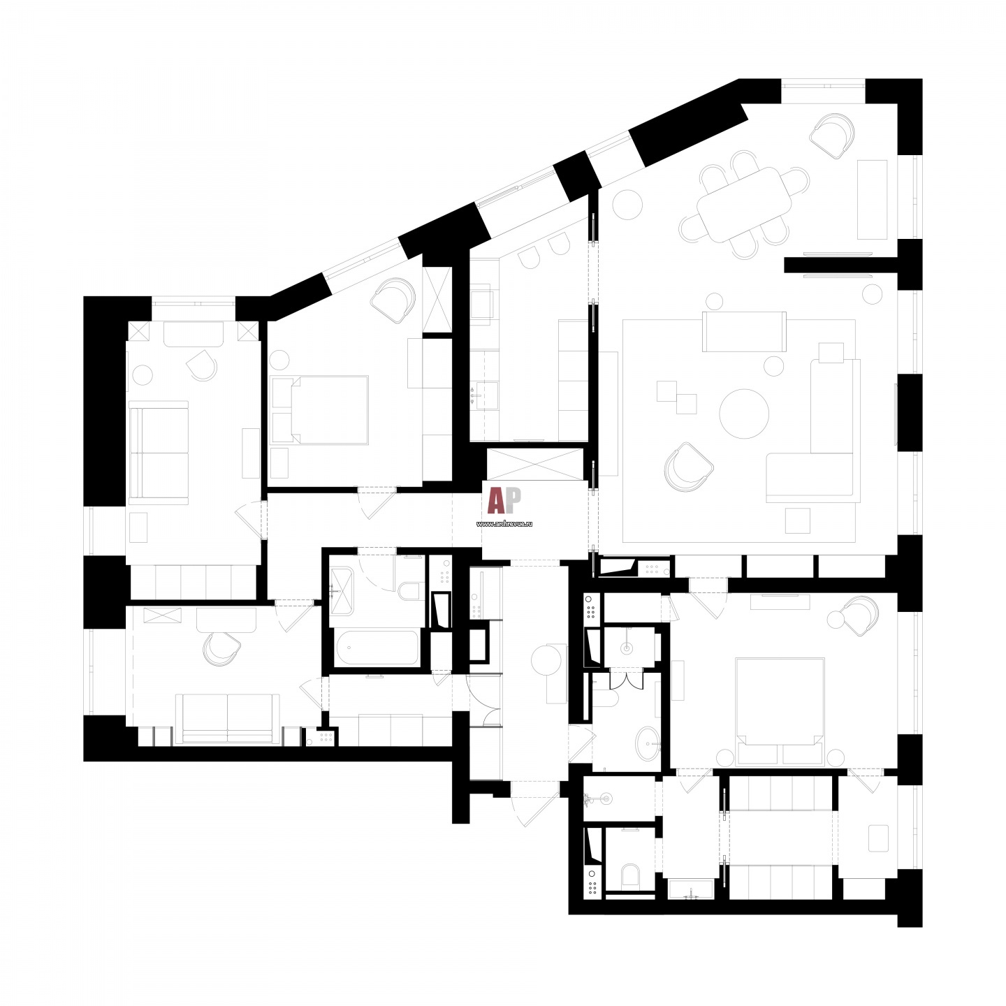 Планировка 5-ти комнатной квартиры в ЖК «Юнион Парк».