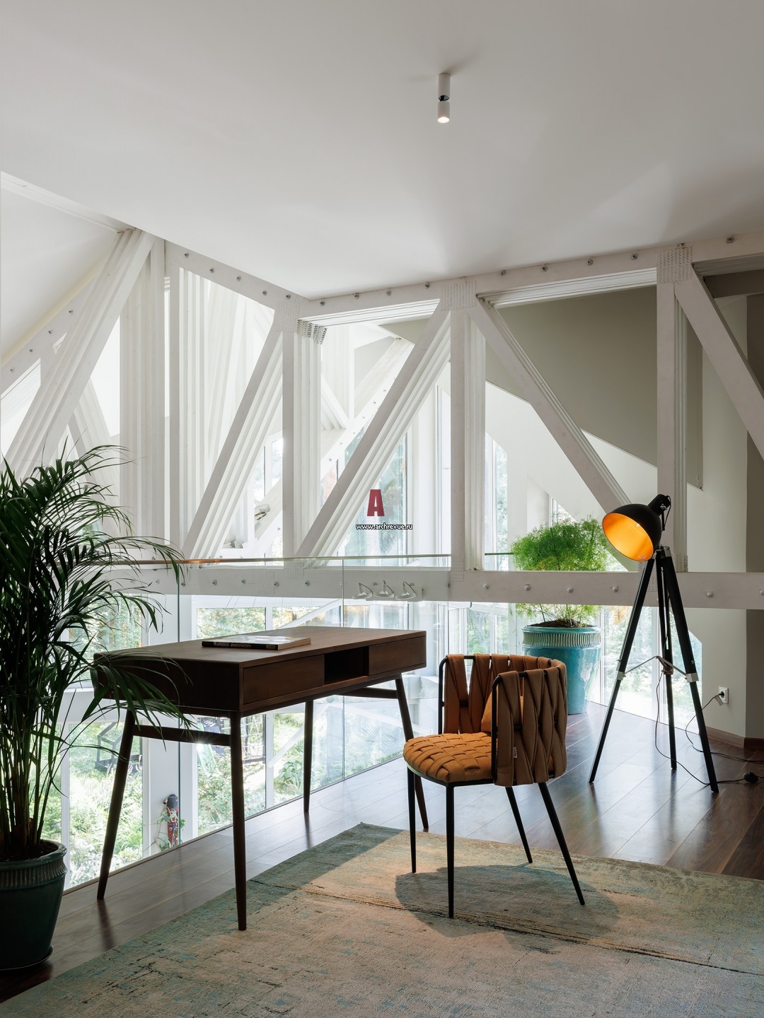 Дом архитектора в стиле современная этника. Рабочая зона на антресоли.