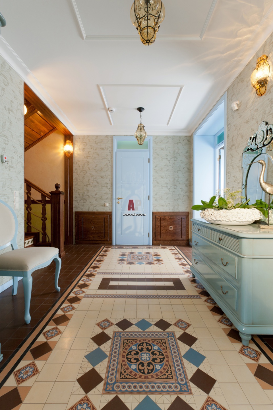 Керамическая плитка Original Style в викторианском стиле уложена декоративным ковром. На стенах – бумажные обои с флористическим орнаментом от Sanderson.