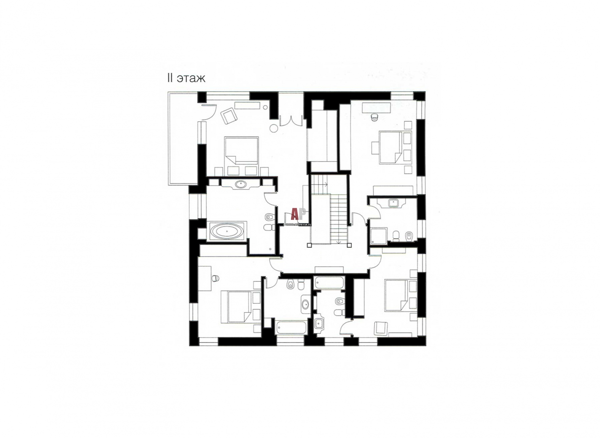 Планировка 2 этажа 2-х этажного дома с эксплуатируемым цоколем.
