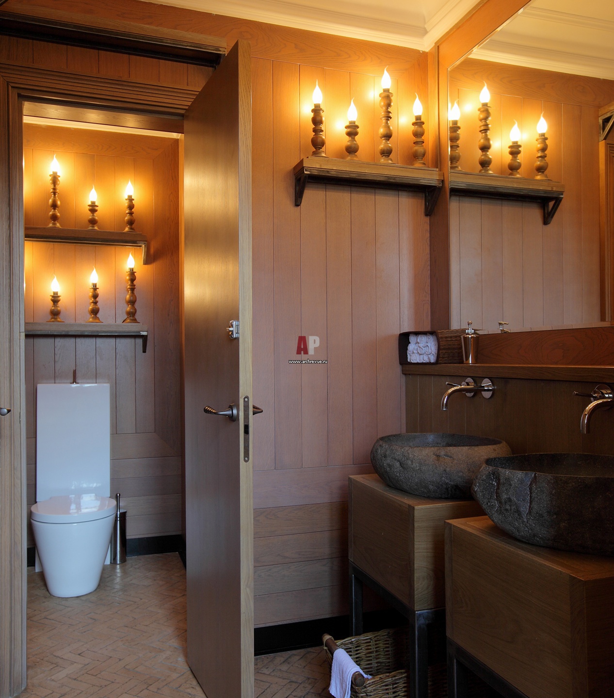 Фото интерьера санузла загородного ресторана в стиле фьюжн