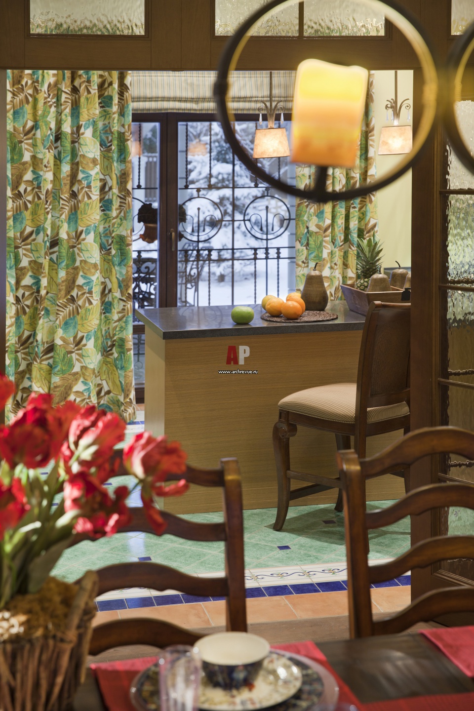 Интерьер кухни-столовой в яркой цветовой гамме.