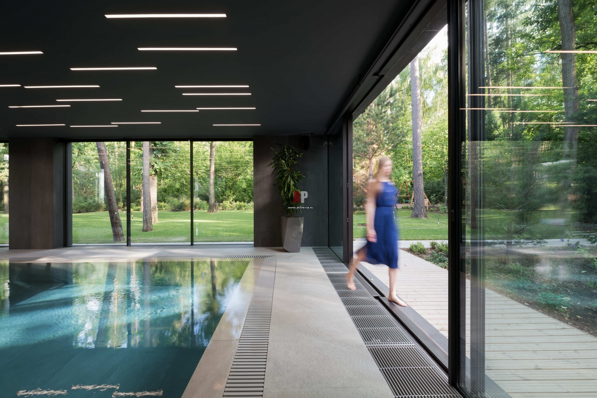 Интерьер бассейна оформлен в эстетике минимализма. Главное здесь – красота окружающего природного ландшафта.